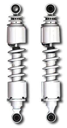 Oil pneumatic gas injection, TRIPLE ADJUSTABLE, show chromed steel bodied shocks that feature ride height adjustment, spring pre-load adjustment and rebound adjustment.